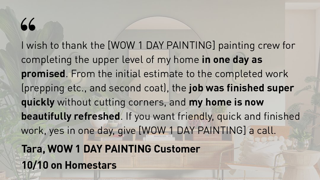 WOW 1 DAY PAINTING - Speed Quality WOW. The 1 Day Difference Our friendly house painters will deliver your quality paint job on time and on budget Exceptional Results Well do a walkthrough before we. Wow 1 day painting promo code.